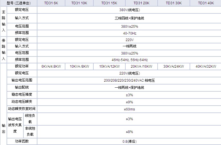 UPS型號(hào): TD31 6K,TD31 10K, TD31 15K , TD31 20K, TD31 30K, TD31 40K