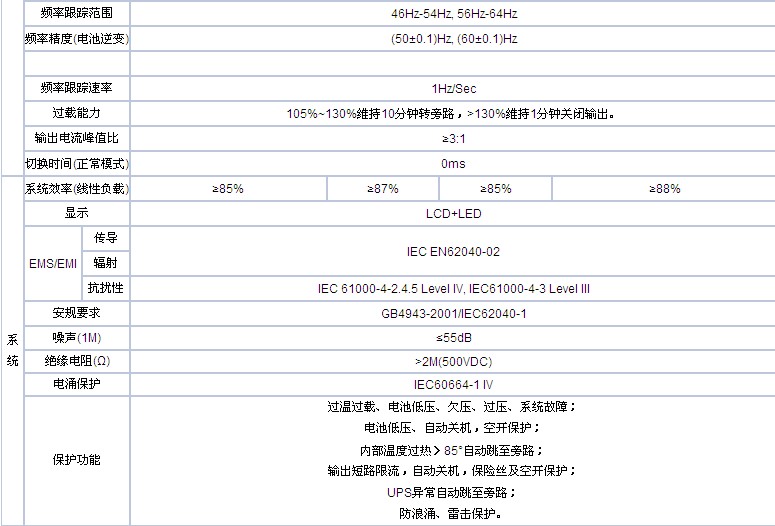 輸出頻率可以根據(jù)市電頻率自動(dòng)設(shè)置為50Hz或者60Hz;