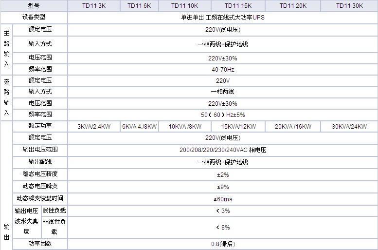 UPS型號: TD11 3K, TD11 6K, TD11 10K, TD11 15K , TD11 20K, TD11 30K