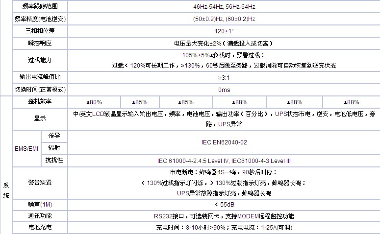 輸出頻率可以根據市電頻率自動設置為50Hz或者60Hz;